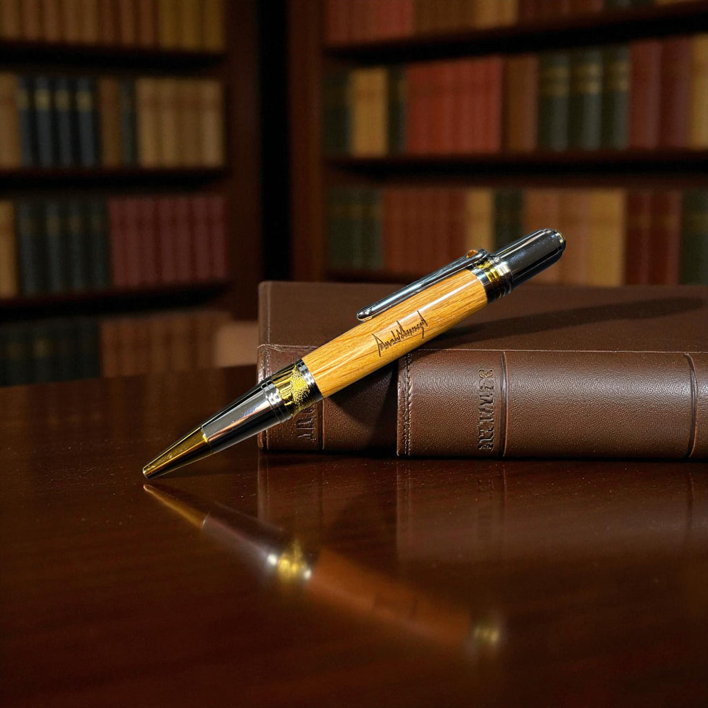 The Donald J. Trump - Presidential Signature Ballpoint is part of a series of three (3) handcrafted pens - Fountain Pen, Rollerball, and Ballpoint. Each pen is one of the 47-piece numbered and Donald J. Trump facsimile signature engraved limited edition pens, created from White House removed Witness Wood® and Witness Wood® removed from President Trump's childhood home in Queens, NY during renovations.